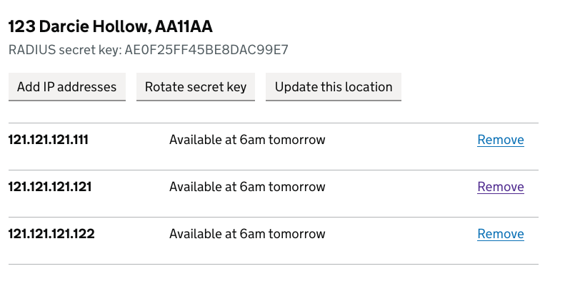 Organisation administrators need to manage the public IP addresses for their physical locations to ensure users can connect to the GovWifi service.